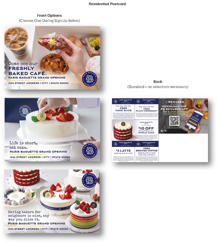 As a Paris Baguette Franchise Owner, a New Cafe Opening Marketing Package is available and required to be purchased via the form below. You have the option to add additional marketing to this required package as well. Choosing to routinely do local store marketing will help drive traffic, sales, and grow awareness for your location.